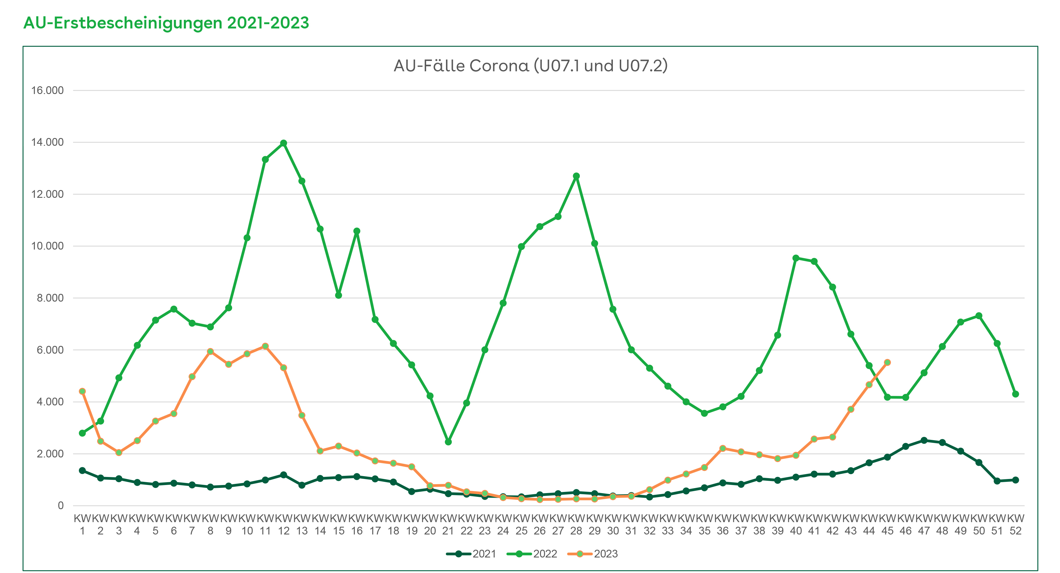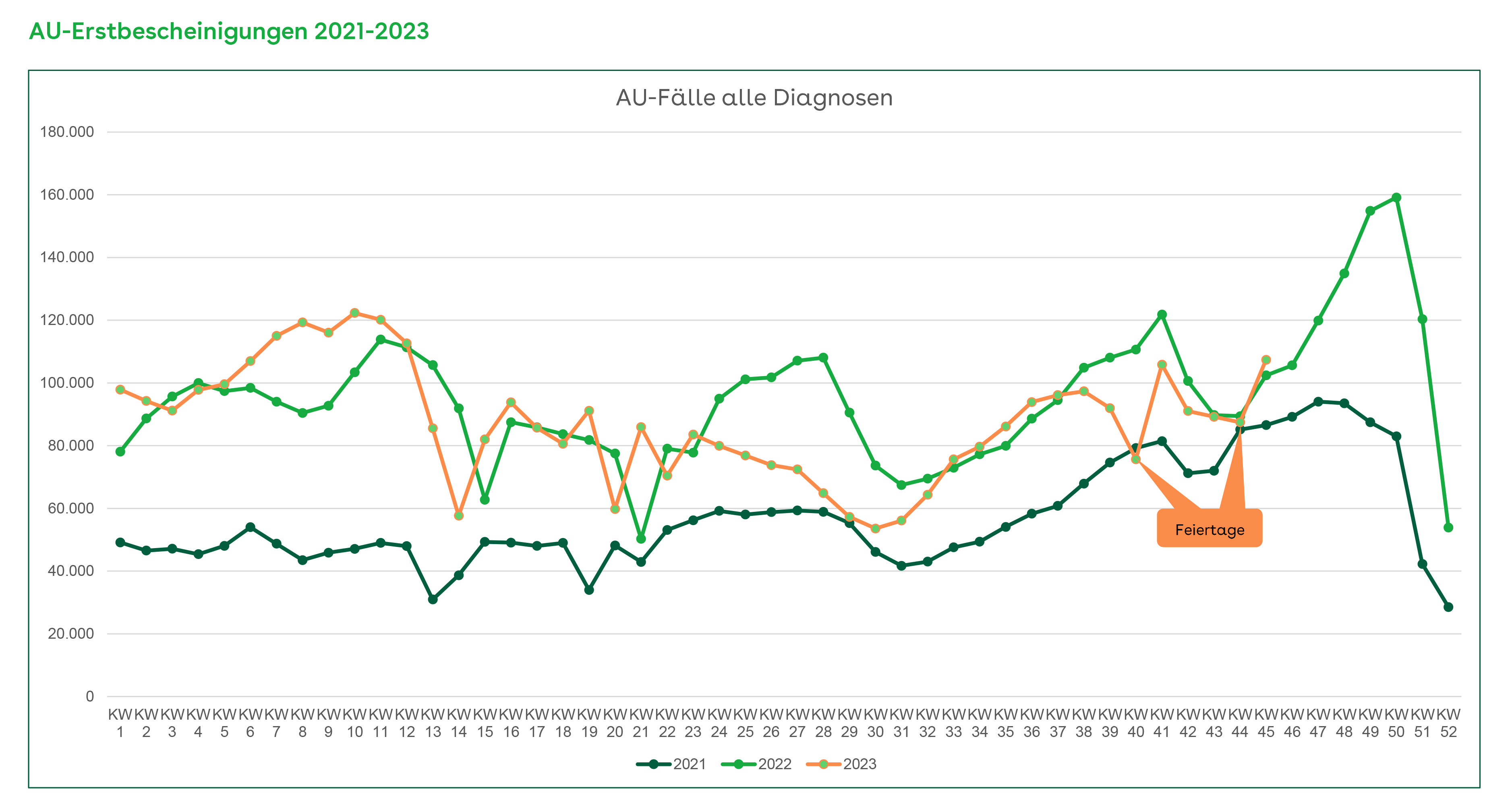 In der ersten Novemberwoche (06.-10. November) wurden rund 36.400 AOK-Versicherte aufgrund einer Atemwegsinfektion krankgeschrieben. Der kontinuierliche Anstieg seit September wurde lediglich durch die Feiertage und Herbstferien im Oktober gebremst.